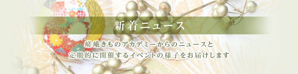 ホームページをリニューアルしました。出張着付けのご依頼、着付師養成講座へのお申し込みお問合せをお待ちしております。今後とも『着付け教室 嵯峨きものアカデミー/出張着付け・着付師養成 スタジオ嵯峨』を何卒よろしくお願い申し上げます。